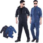 防寒つなぎ デニム作業服 作業着セットアップ メンズ オーバーオール ジャケット+ズボン おしゃれ ワークウェア 現場作業 ワークマン