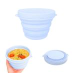 happykau 折り畳み ボウル 食品級シリコン 500ml 蓋付き マイクロ波加熱 多機能 旅行 キャンプ用 通学 携帯便利 (ブルー)