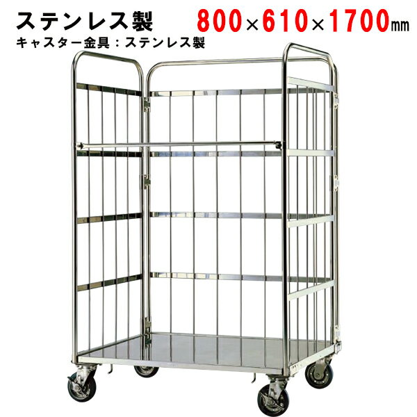 2%OFFクーポン 1/24 10:00まで ステンレス製 カゴ台車 800×610×1700 ロールボックスパレット MC-1E ロールボックス ロール台車 ステンレスかご台車 カゴ車 かご車 台車 業務用 運搬車折り畳み 大型台車 物流 倉庫 テックサス