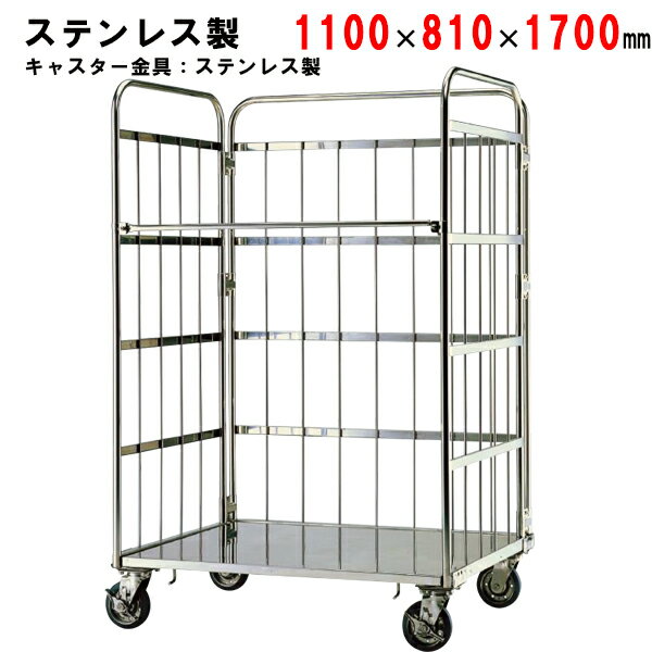 2%OFFクーポン 1/24 10:00まで ステンレス製 カゴ台車 1100×810×1700 ロールボックスパレット MC-4E ロールボックス ロール台車 ステンレスかご台車 カゴ車 かご車 台車 業務用 運搬車折り畳み 大型台車 物流 倉庫 テックサス