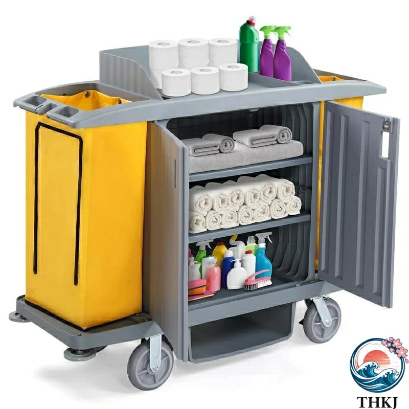 【全品2点で5%OFF】ホテルリネンカート 業務用ダストカート 清掃カート 掃除カート 多機能 ホテル清掃台車 ホテル クリーニングカート ダストカート付布袋 大容量収納 耐久性 キャスター付き 学校 病院 工場 旅館 客室 ホテル 部屋の掃除収納