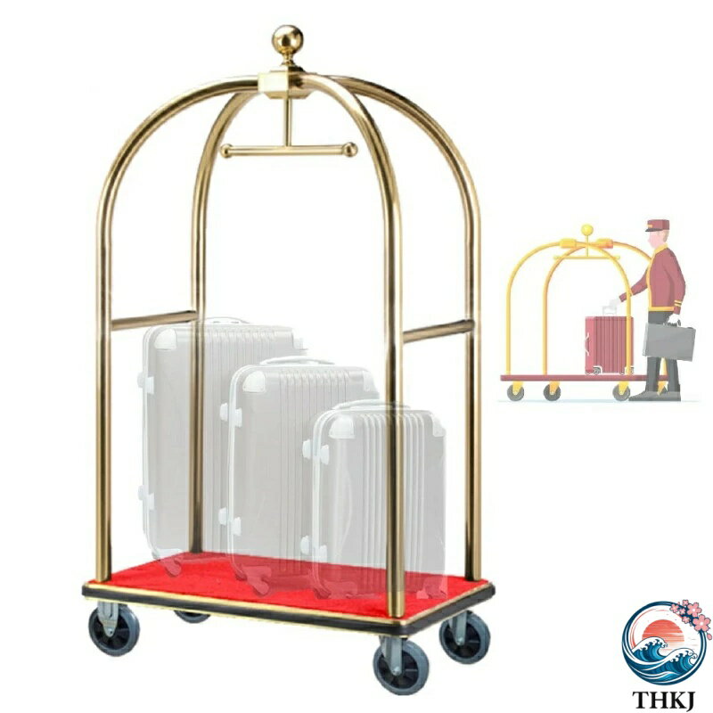 【全品2点で5%OFF】ベルカート ホテルカート 台車 キャスター付き 荷物用カート 高級ホテル専用 手押し台車 業務用 ベルカート ホテルカート 荷物用台車 荷物用カート チタン製ステンレス製 ゴールド仕上げ 大金ボール 静音キャスター 頑丈 耐久