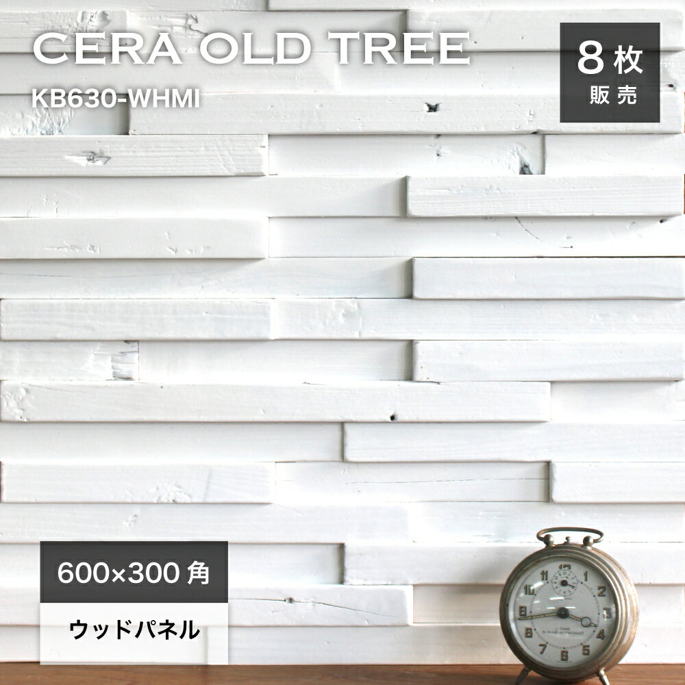 天然木 壁用 ウッドパネル ウォールパネル 白 ホワイト 塗装 木材 アンティーク ヴィンテージ 壁材 内壁 内装 古材 3Dウッド【セラオールドトゥリー KB630R-WHMI 8枚セット】