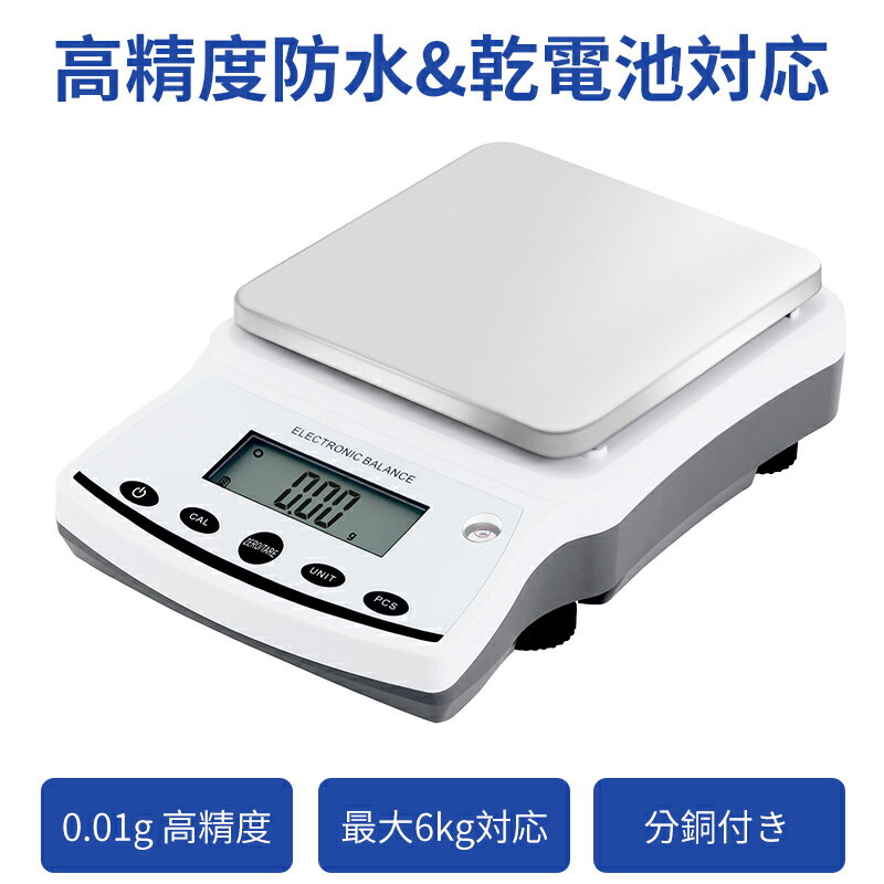 【5年保証】精密はかり 0.01Gx6000G 電子天秤 計量器 天秤計量皿 実験室 業務用 プロ用学校 宝石店 薬局 風防付き 電子はかり0.01g単位 業務用 実験室天びん 宝石店 学校き