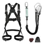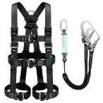 [lifning] 安全帯 フルハーネス ハーネス フルハーネス安全帯 新規格 セット 墜落制止用器具 サイズ調整可能 (ブラック)