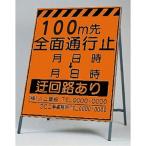 つくし工房 安全標識 KK-2-100 『100m先全面通行止め』 蛍光高輝度反射立看板 自立型 1600×1100mm スチール+反射シート(蛍光)[送料別途お見積り][法人限定]