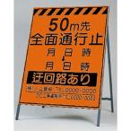 つくし工房 安全標識 KK-2-50 『50m先全面通行止め』 蛍光高輝度反射立看板 自立型 1600×1100mm スチール+反射シート(蛍光)[送料別途お見積り][法人限定]