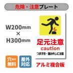 看板 足元注意 プレート W200×H300ミリ 危険 注意看板 安全標識 アルミ複合板 穴あけ無料 屋外 売れ筋(会社様、個人事業主のみ送料無料)