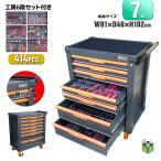414pcs 工具セット付 7段 キャビネットツールボックス 工具入れ 工具箱 ロック鍵付き / 大型ローラーキャビネット キャスター ストッパー付き