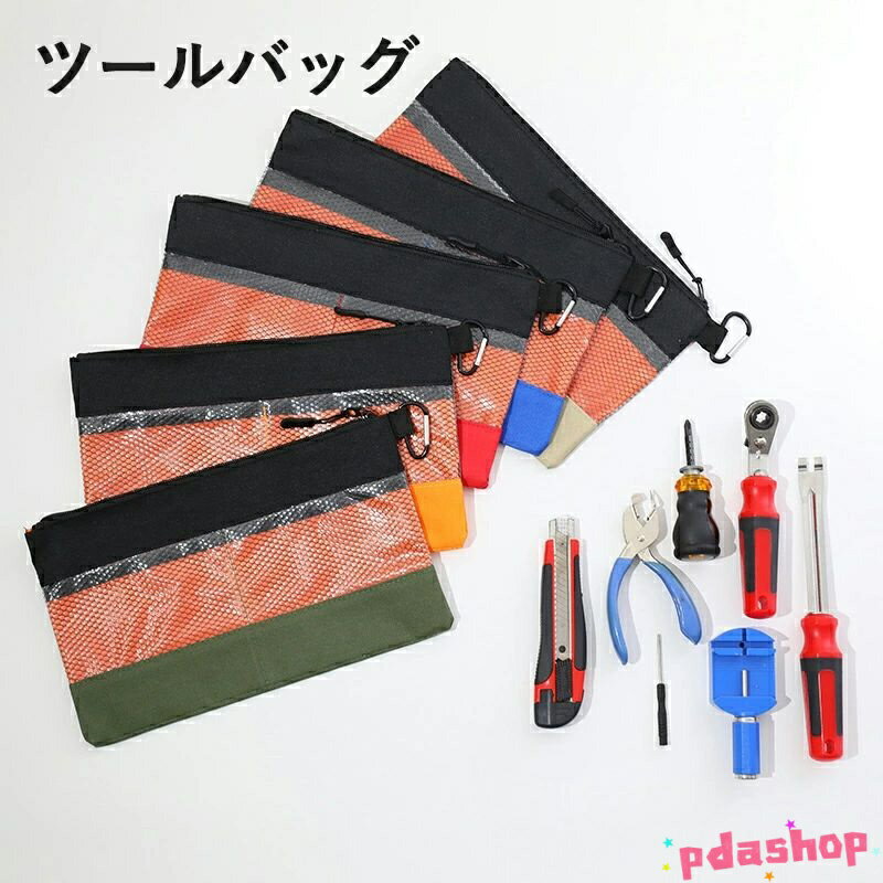 【全品2点で5%OFF】ツールバッグ 小型 工具バッグ 静電気防止・防水 透明 PVC 大容量 工具入れ 工具収納バッグ ガジェットポーチ 金属フック付き 腰袋 作業用ポーチ 道具袋 家庭・アウトドア・園芸・車内対応 多機能 文房具・ケーブル収納