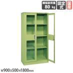 大型保管庫 サカエ 幅900×奥行500×高さ1800mm 透明窓付扉付 グリーン 均等耐荷重80kg 棚板3枚付 粉体塗装 工具保管庫 工具保管 保管庫 収納 日本製 KU-81M