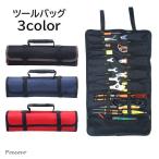 ツールバッグ 工具収納袋 工具袋 ロールバッグ オックスフォード ポケット付き 持ち手付き コンパクト 工具差し入れ 無地 ブラック 黒 ブルー レッ
