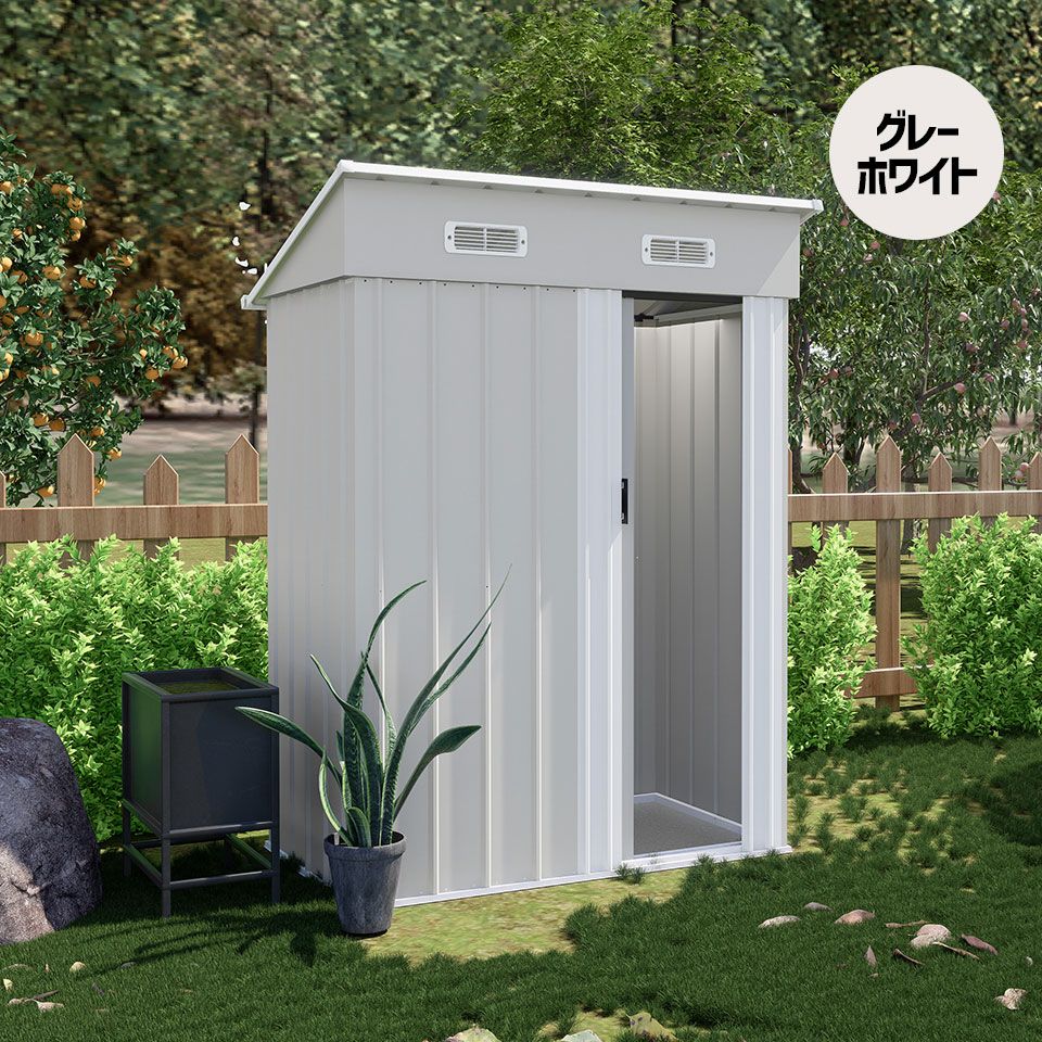 【15%OFF★24H限定】【可動棚なし】物置 屋外 スチール 倉庫 床材補強フレーム付き 戸外収納庫 幅148*奥行き82.5*高193 物置き おしゃれ 大型 収納庫 屋外物置 防さび ベランダ 防水 ドア スチール物置 屋外収納 ガーデニング 庭 新作【グレーホワイト】