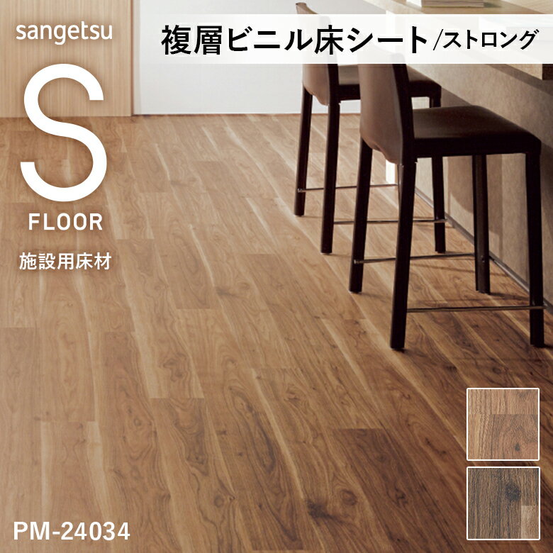 【平日12時までなら即日出荷可】S FLOOR m単位 木目柄 ストロング ウォルナット PM-24034 PM-24035 サンゲツ 複層ビニル床シート 1m単位 長尺シート 施設用床材 ワックスフリーコーティング 182cm巾