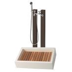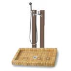 立水栓 水栓柱 シャワープレイスセット レヴウッド 給水用 給湯用 混合水栓金具(カランパイプ無) パン(FRP製・すのこ付) 犬猫 ペット用 人工木 動物用