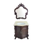 シンプルで大きい洗面器 8点フルセット ブロンズ 洗面器+カウンター+アイアン製フレーム+のびる蛇口+排水金具+引き棒キャップ+給水金具