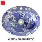 有田焼 染付祥瑞 埋め込み 深型 洗面ボウル 選べる3タイプ W580×D450 和風 磁器 伊万里焼 日本製 洗面ボール 洗面器 洗面所 洗面台 オーバル
