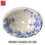 有田焼 染付祥瑞 埋め込み 深型 洗面ボウル W550×D450 和風 磁器 伊万里焼 日本製 洗面ボール 洗面器 洗面所 洗面台 オーバル