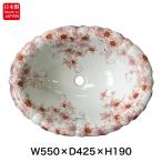 洗面ボウル おしゃれ 有田焼 染錦金彩桜絵 楕円 W580