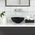 vidaXL バスルーム用 洗面ボウル セラミック製 マットブラック 丸型 ハードウェア 配管 配管器具 シンク 洗面器 代引不可