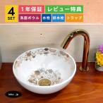 4点セット 洗面ボウル+自動水栓+排水栓+トラップ 丸 陶器 手洗い器 置き型 蛇口 自動水栓 金 ゴールド おしゃれ 花模様 エレガント INK-0403237H-0305002Hset