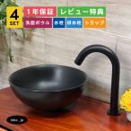 洗面ボウル セット 自動水栓 排水栓 トラップ 4点 丸 陶器 手洗い器 置き型 蛇口 自動水栓 黒 ブラック おしゃれ マット ブラック INK-0403366H-0305003Hset