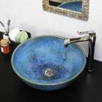 信楽焼 手洗い鉢 洗面ボウル 洗面ボール 陶器 手洗い器 洗面台 リフォーム 和風 洗面シンク DIY おしゃれ 青ビードロ(大型) tr-4088