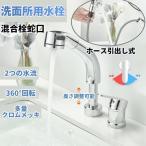 洗面台蛇口 混合水栓 ホース引き出し式 洗面水栓 シングルレバー 洗面用水栓 洗面所 化粧台も 360°回転 泡沫 ¥u0026シャワーが切り替え 台付き2穴 台所用品