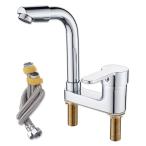 Maynosi 洗面台蛇口 2穴洗面用水栓 洗面台用 洗面水栓 ツーホール式 シングルレバー 混合水栓 手洗いボウル用 360° 回転 水栓金具