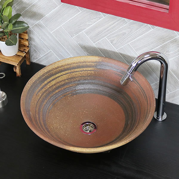 【スーパーSALE 20%OFFクーポン】信楽焼 和風 おしゃれ レッドブラック 中型 手洗い鉢 洗面鉢 お洒落 洗面器 手洗器 手洗鉢 洗面ボール 洗面シンク 陶器 洗面台 手洗い 鉢洗面ボウル 洗面陶器 tr-3229