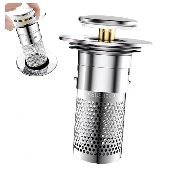 洗面台 ポップアップ 排水栓 排水口 ごみ受け ステンレス製 目詰まり防止 キッチン用 台所用 浴室 (Type1 シルバー)