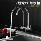 二口水栓 キッチン 流し台 台所用 二股蛇口 交換自分で ダブルハンドル おしゃれ 台付 水栓金具 2槽シンク用 単水栓 360度回転 取付簡単 水道蛇口 キッチン水栓