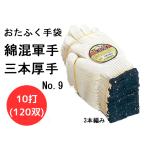 軍手 三本厚手 おたふく手袋 No.9 綿混 フリーサイズ 1打(12双入)×10打 120双