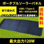 持ち歩ける ソーラーパネル 4枚式 120W ソーラーチャージャー 発電機 DC出力 / USB / Type-C 出力 折りたたみ式 高変換効率 超薄型 防災 1年保証