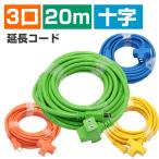 延長コード 20m 3口 耐寒性 超ソフト 十字延長コード 屋外 屋内 15A 1500W 20M