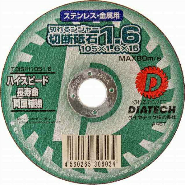 【マラソン期間2%OFFクーポン9日8時まで】【10枚入】切断砥石 ステンレス 金属切断用 切れるンジャー 105×1.6 4インチ 105×1.6×15 乾式 DRY ディスクグラインダー