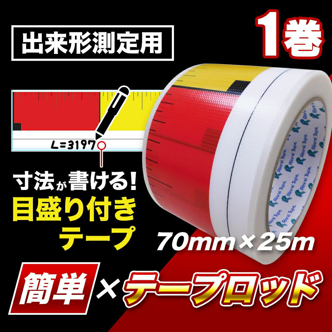 \25日限定 抽選で100%Pバック&ブラックフライデー開催 11/27まで/目盛り付きテープ 簡単×テープロッド 70mm×25m | 手で切れる ロッドテープ コンクリート面 書ける 粘着テープ 測定用 測量用 日本製 送料無料