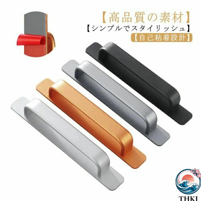 【全品2点で5%OFF】ドア取手 引き出し取手 自己粘着式 アルミニウム合金 両面テープ式 戸棚引きハンドル 取っ手 引き戸開閉補助 アルミ合金 DIY 金具 窓/網戸/引き出し/戸棚/ドア用 取り付けが簡単 引き出し ドア 扉 部屋 家具 取っ手 後付け