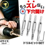センター出し用 ドリルビット 4本 セット 蝶番 ヒンジ 丁番 取り付け センタードリルビット センター出し ネジ 下穴用 穴あけ ドリル ガイド 六角軸