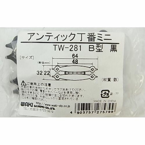 ★10%OFFクーポン 4日20:00〜5日23:59迄★アンティック丁番ミニ B型 TW-281 黒 和気産業