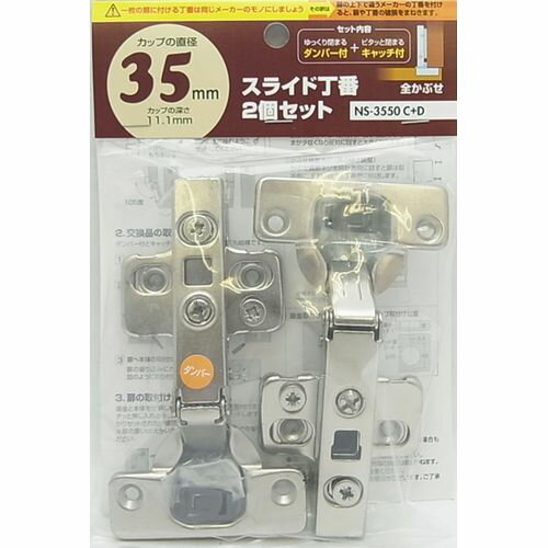 ★10%OFFクーポン 4日20:00〜5日23:59迄★スライド丁番 2個セット 全かぶせ NS-3550 C+D 和気産業