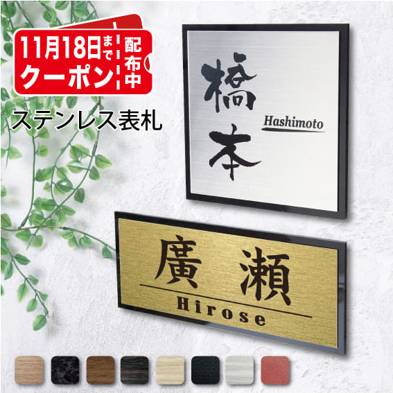 表札 ステンレス おしゃれ 戸建て サイズ7種類 10x10cm 〜 送料無料 両面テープ ブラック 白 金 黒 正方形 長方形 プレート 商品番号IF-3000 IFM