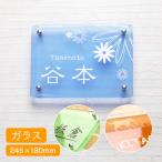 表札 おしゃれ ガラス 【 手作りガラス表札 長方形245サイズ 】 犬 花 かわいい 戸建て 北欧 デザイン