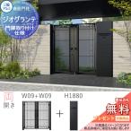 【無料★特典対象】 機能門柱+門扉セット ジオグランテ H1880 照明+ポスト+宅配ボックス(後出し) 門扉取り付け仕様 門柱タイプ 両開き 内開き W09