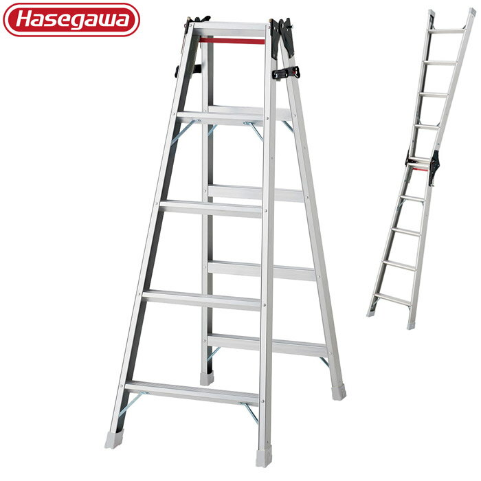 【10%OFF!スーパーSALE特価】 脚立 折りたたみ おしゃれ アルミ 6段 はしご 兼用脚立 ワンタッチバー 付 RAX-18c H1700×W620×D1110 長谷川 一台単位 シルバー 軽量 作業道具 作業台 ハシゴ 梯子 台 踏み台 足場 足場台 建築 現場 洗車 DIY 【代金引換対応不可】