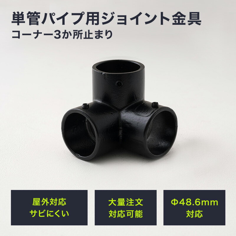 [11%OFF!1/1限定クーポン]単管パイプ ジョイント Φ48.6mm diy おしゃれ ジョイコ タンカンdiy 単管パイプ用ジョイント金具 屋外対応タイプ コーナー3か所止まり ブラック H-N-0
