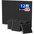 吸音材 防音 極厚 30*30*5cm 12枚 ウレタンフォーム 吸音パネル 耐火 吸音対策 遮音ウエッジ 両面テープ付き スタジオ 黒 送料無料