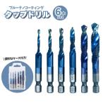 タップドリル 6本セット ブルーナノコーティング 専用ケース付き 六角軸 6.35mm ねじ切り 工具 DIY 電動ドリル インパクトドライバー