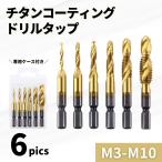 ドリル ビット チタン 鉄鋼用 木工用 穴あけ 6本セット 工具 電動 インパクト ドライバー 鉄板 下穴 タップ ドリル刃