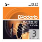 【アコースティックギター弦 3セット】 ダダリオ D'Addario EJ10-3D Extra Light 10-47 80/20 BRONZE 3セットパック お買い得 正規品